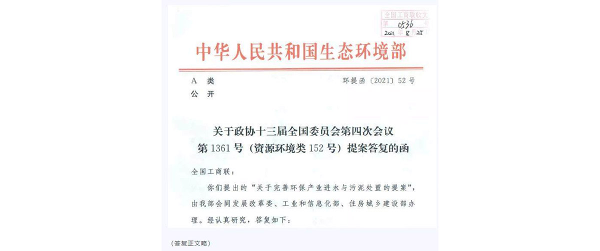 对于全年全国工商联环境商会的提案,生态环境部也做出了答复。