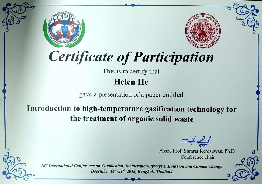 2018年12月18日至21日,绿润科技团队随院士工作站盛宏至老师参与“第十届燃烧、焚烧/热解、排放与气候变化国际会议(I-CIPEC)”。