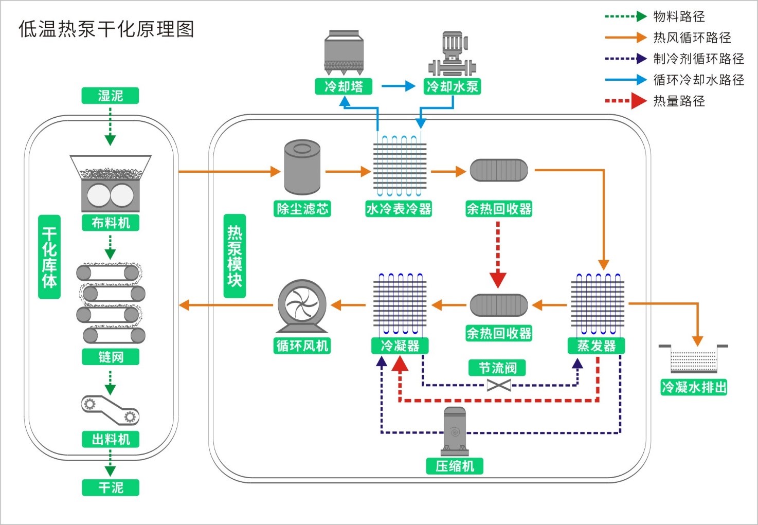 1、独立风道设计,循环热风在干化库体内流转,不接触直接接触热泵模块核心设备,有效隔绝腐蚀性气体对核心设备的损坏